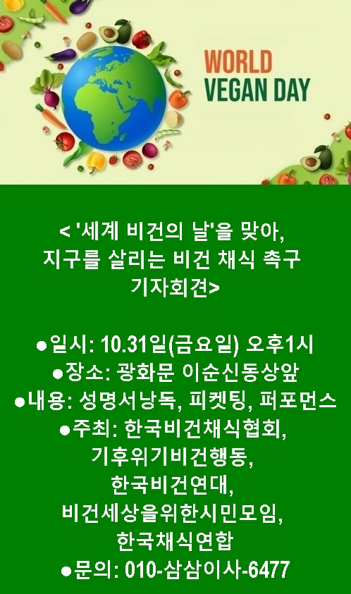 | [ڷ] 10.31(), 11 1 ' '(World Vegan Day) ¾, 츮 ä ˱ ȸ |